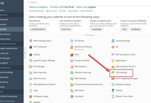 Log into your Plesk panel. Then click on the DNS Settings icon as shown below